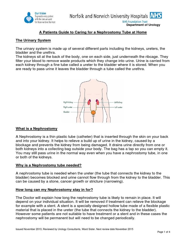 Caring for a Nephrostomy Tube at Home Urinary System Urinary Bladder